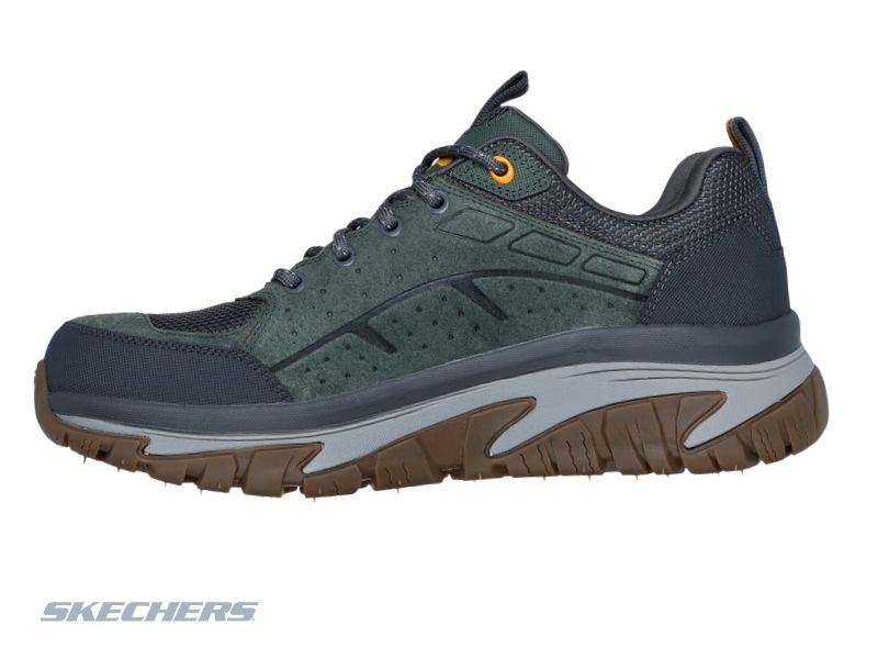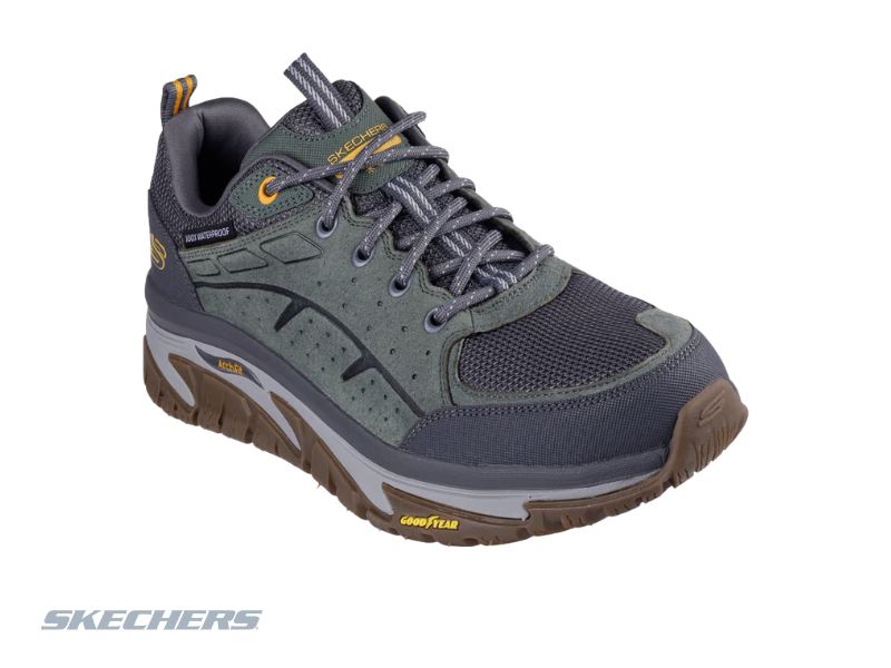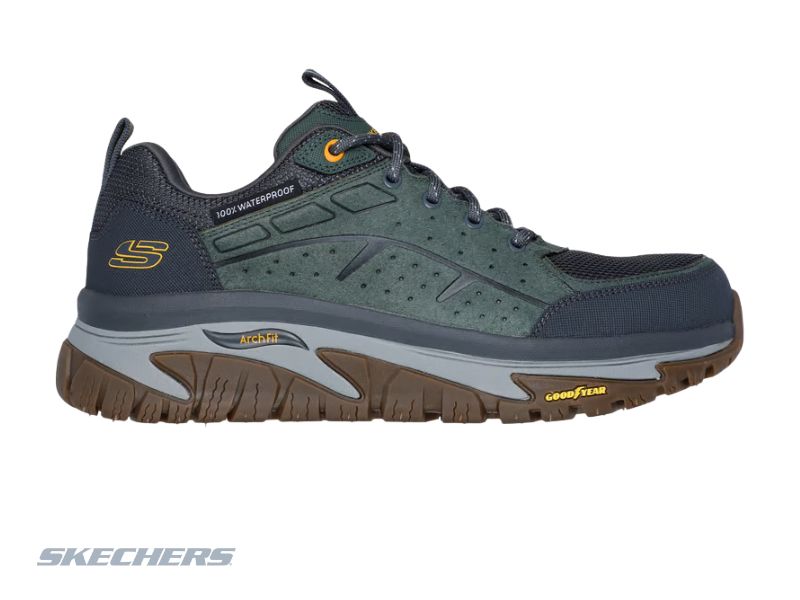 Capellada de gamuza y malla resistente al agua, plantilla removible Arch Fit que brinda gran soporte al arco y suela de goma Goodyear que ofrece excelente tracción y durabilidad.