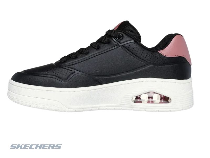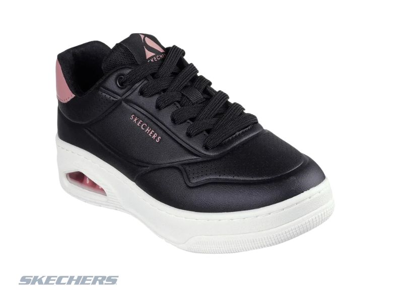 Capellada de cuero resistente en relieve, plantilla Air-Cooled Memory Foam y entresuela con cámara de aire visible Skech-Air que brinda gran amortiguación, comodidad y estilo urbano para el uso diario.