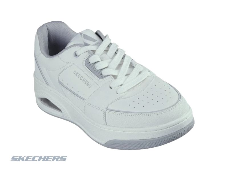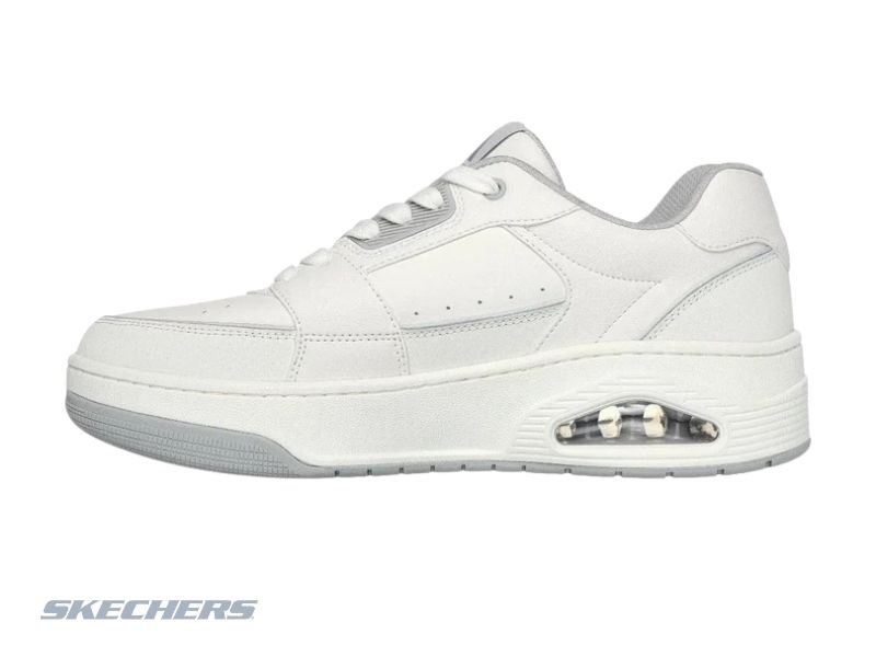 Capellada combinada de cuero y duraleather, plantilla Air-Cooled Memory Foam y entresuela con cámara de aire Skech-Air que brinda gran amortiguación, estabilidad y comodidad con estilo urbano.