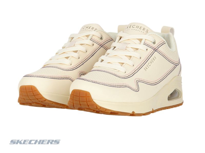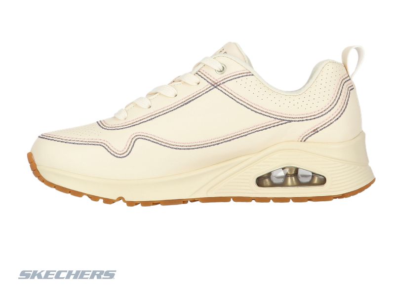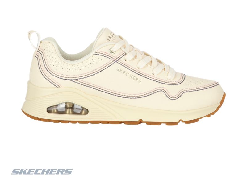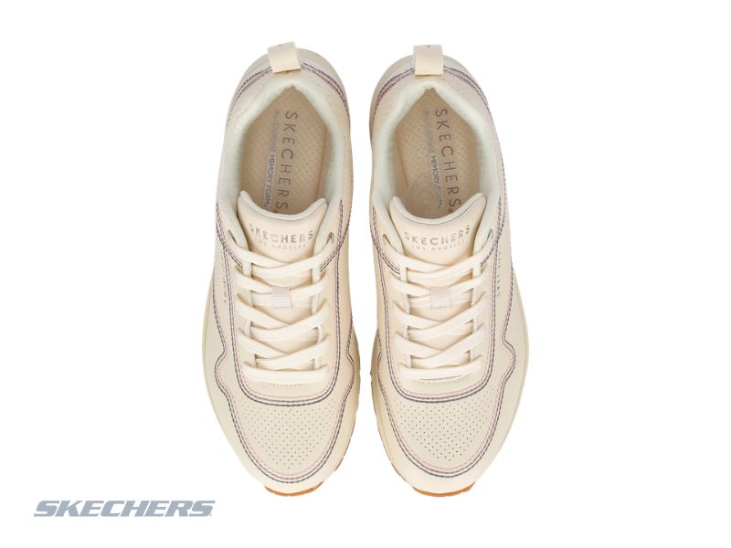 Capellada sintética perforada, plantilla Air Cooled Memory Foam y media suela con cámara de aire visible Skech-Air que brinda máxima amortiguación, confort y estilo urbano para el uso diario.